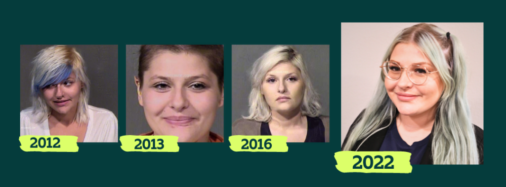 Despite all of this, I never stopped fighting for myself. I always held the core belief that I could be better. Sadly, determination was not always enough to keep me out of cycles of chaotic or risky drug use. I was 20 years old when I was released from prison for the first time. My boyfriend and I immediately drove to the closest place with a restroom, a Wendy's, and I overdosed less than 30 minutes after my release. I survived, but due to lack of oxygen, my brain has never been the same. It wouldn’t be my last time being released from prison, and it wouldn’t be my last overdose. I desperately craved normalcy, but didn’t know how to achieve it. My trauma was like a monkey on my back, and no one would give me the skills to control him.